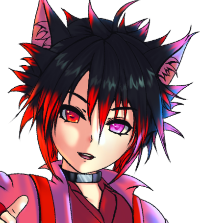Hello nice to meet you my name is Ozzy. I am a Neko boi that can change to any color that I please but mine main to colors are Pink and Red.